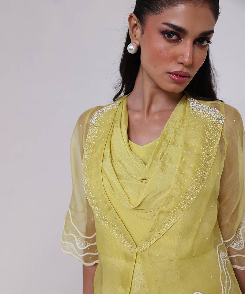 | Product Name | Green Embroidered Chinon Jumpsuit With Jacket | |
