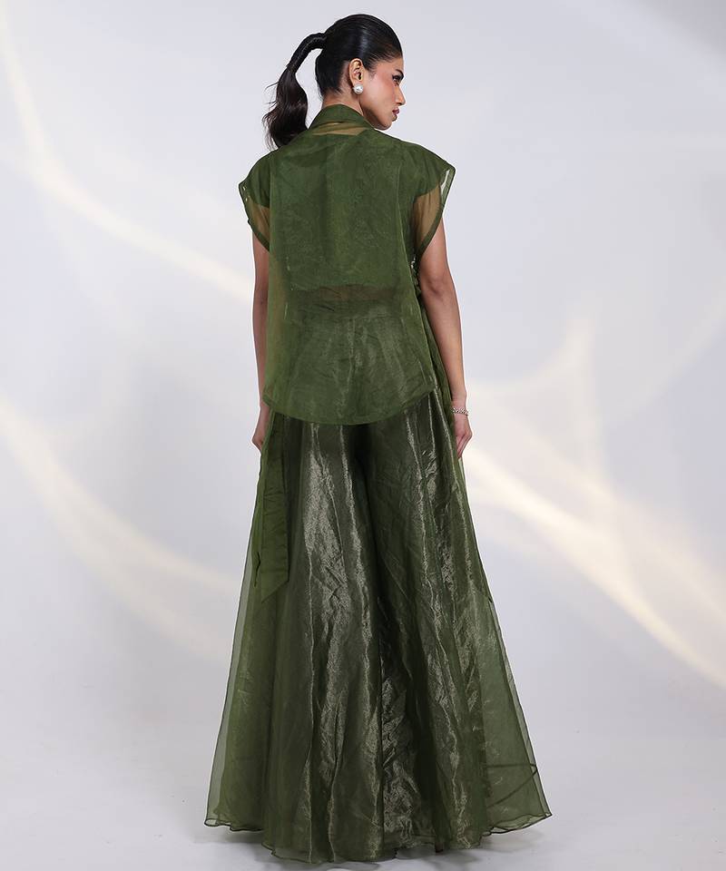 Green embroidered crepe co ord set