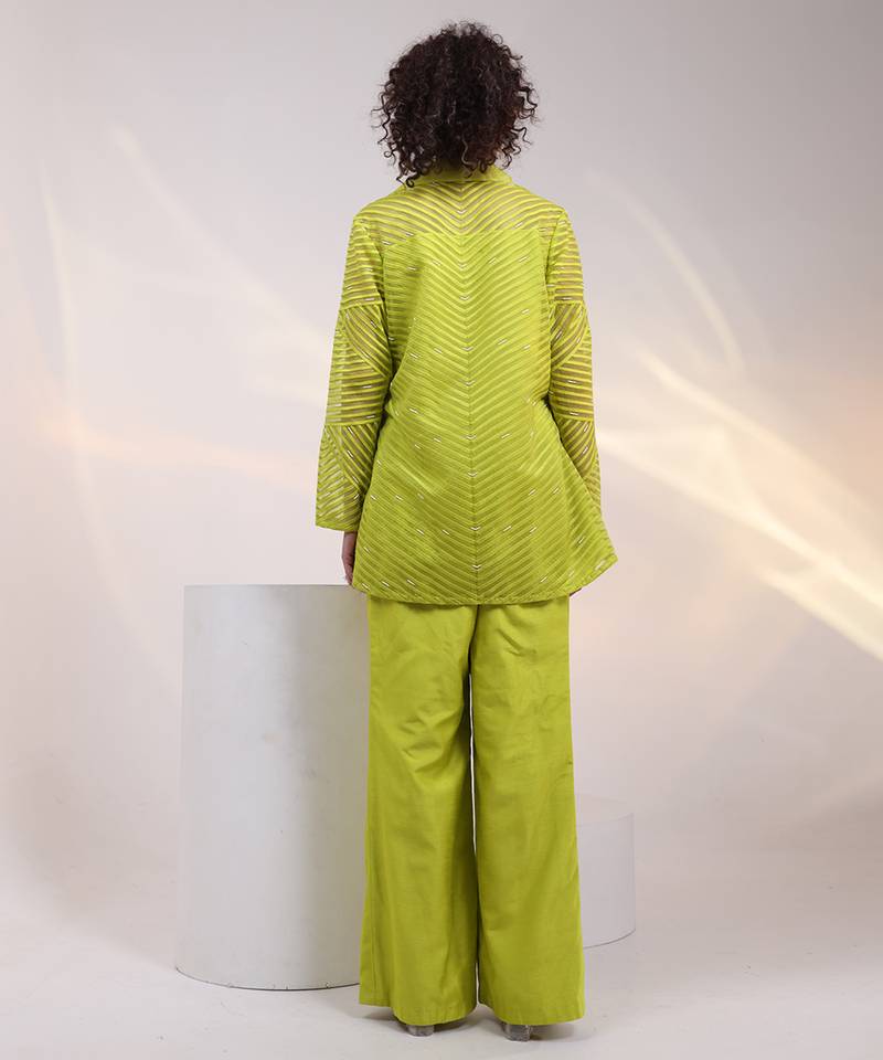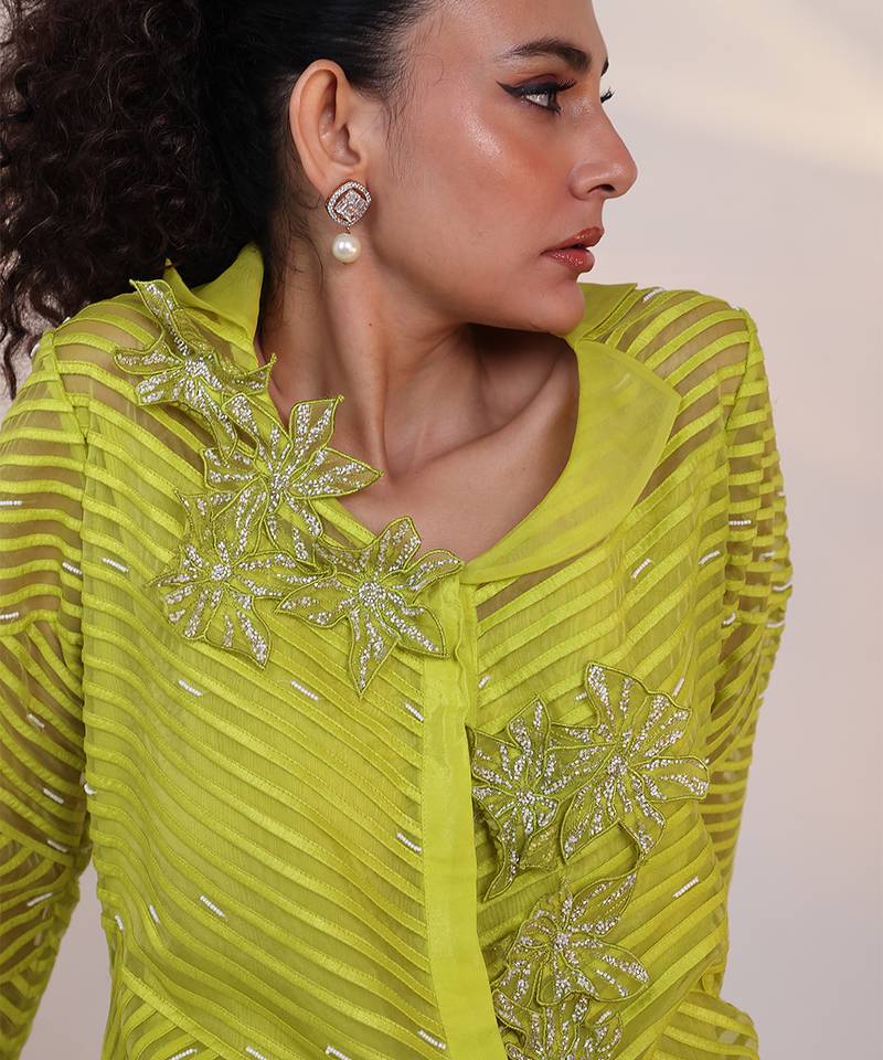 Green embroidered organza co ord set