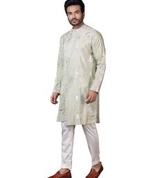 Green embroidered silk kurta pajama
