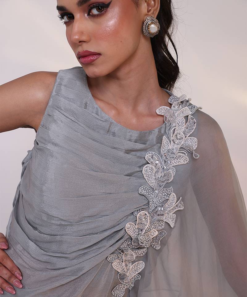 | Product Description | Exude Understated Elegance With This Grey Embroidered Chinon Co Ord Set, Crafted From Lightweight Chinon Fabric For A Graceful Flow. Intricate Embroidery Adds A Refined Touch, While The Coordinated Silhouette Ensures Effortless Styling, Making It Ideal For Festive Gatherings, Evening Functions, And Modern Celebratory Wear.