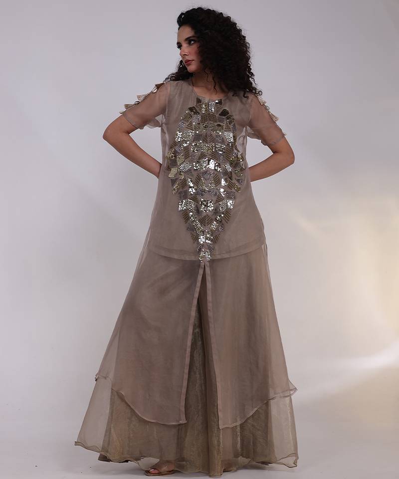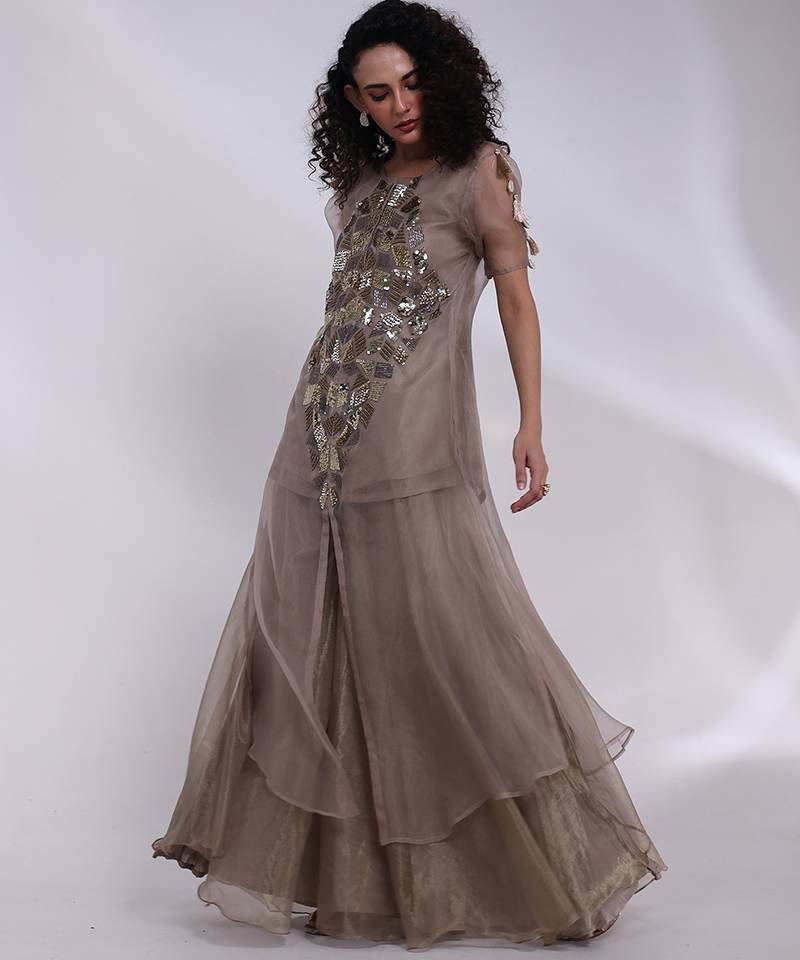 | Product Description | This Grey Embroidered Tissue Co Ord Set With Cape Blends Modern Elegance With Festive Charm. Crafted In Lightweight Tissue Fabric, It Features Delicate Embroidery And A Flowy Cape That Adds Movement And Drama. Perfect For Weddings, Soirées, And Special Occasions, It Offers A Refined Yet Contemporary Silhouette.