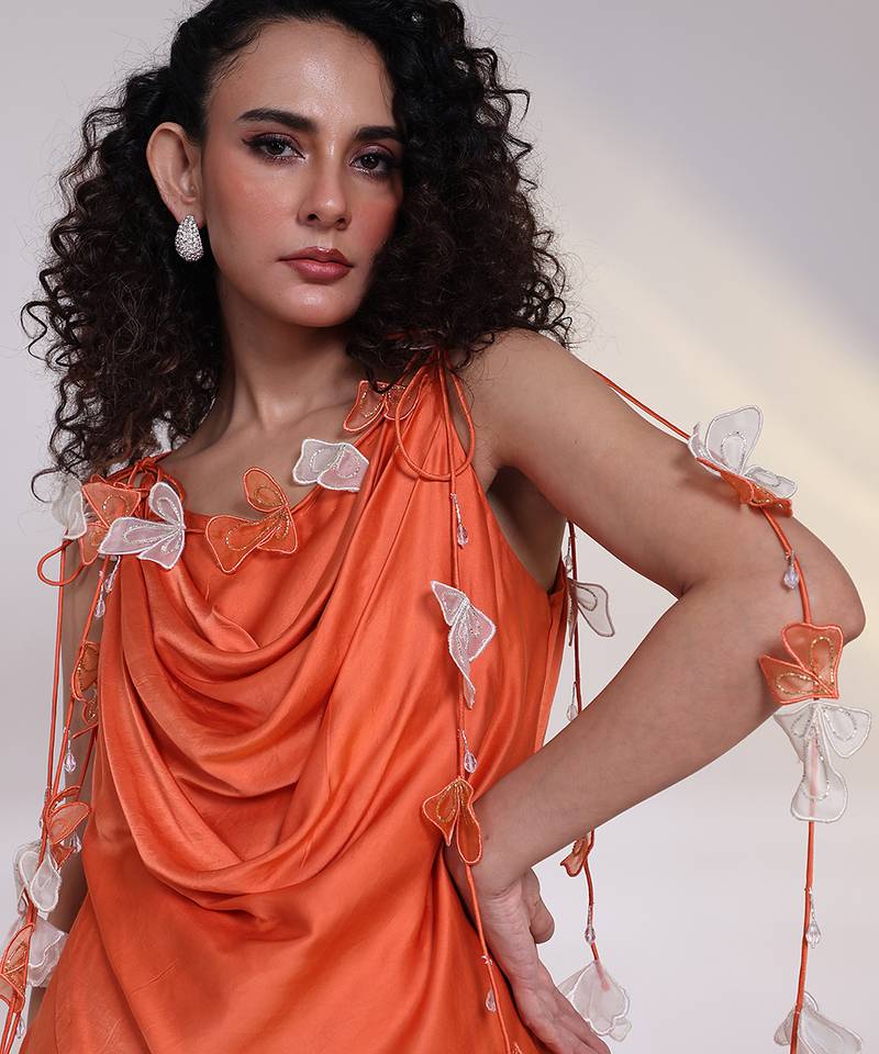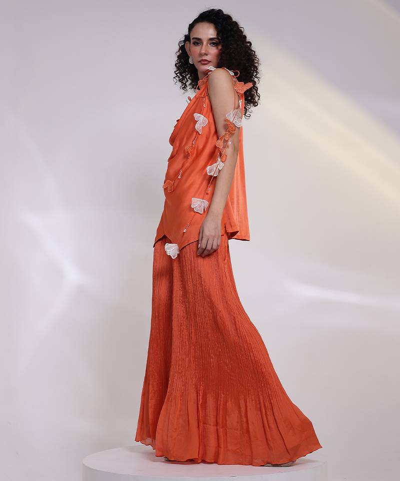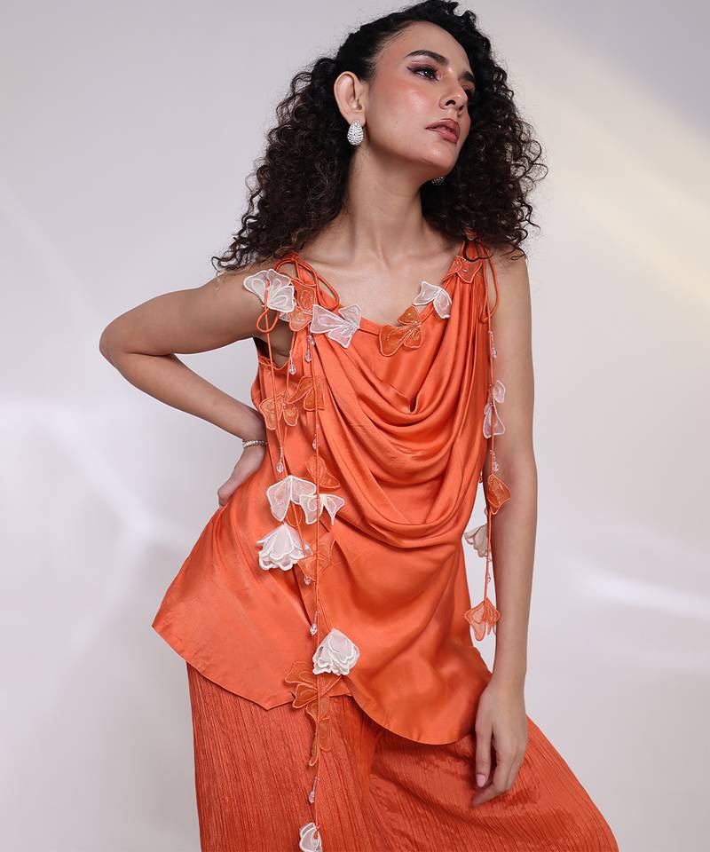 | Product Description | This Orange Embroidered Satin Co Ord Set Exudes Vibrant Elegance And Contemporary Charm. Crafted In Lustrous Satin, It Features Fine Embroidery That Adds A Touch Of Sophistication. The Coordinated Silhouette Offers Comfort And Style, Making It Perfect For Festive Events, Celebratory Evenings, And Statement Occasions.