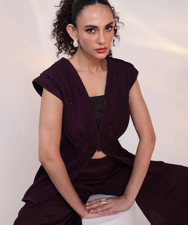 | Product Name | Wine Embroidered Chinon Co Ord Set | |