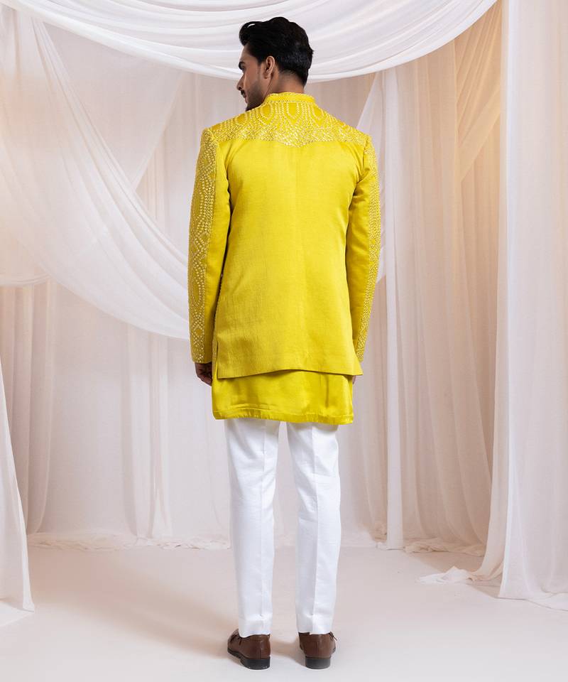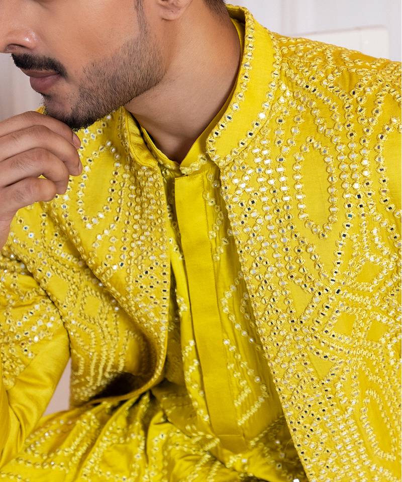 | Product Description | This Yellow Embroidered Satin Jacket Radiates Vibrant Elegance And Contemporary Sophistication. Crafted From Smooth, Luxurious Satin, It Features Intricate Embroidery That Adds Refined Charm. Perfect For Layering Over Festive Or Casual Outfits, It Offers A Chic, Polished Silhouette, Making It Ideal For Celebrations, Parties, Or Special Occasions With Stylish Appeal.