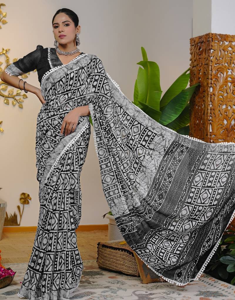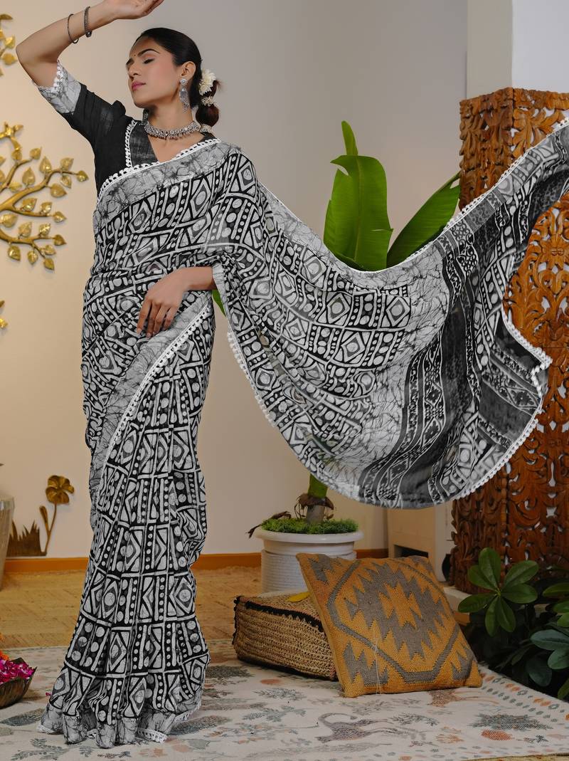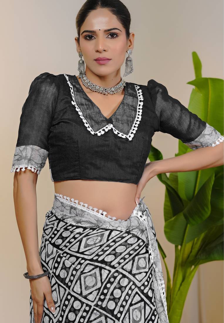 | Product Name | Cotton Blend Batik Block Print Ready To Wear Saree With Pocket Black | |