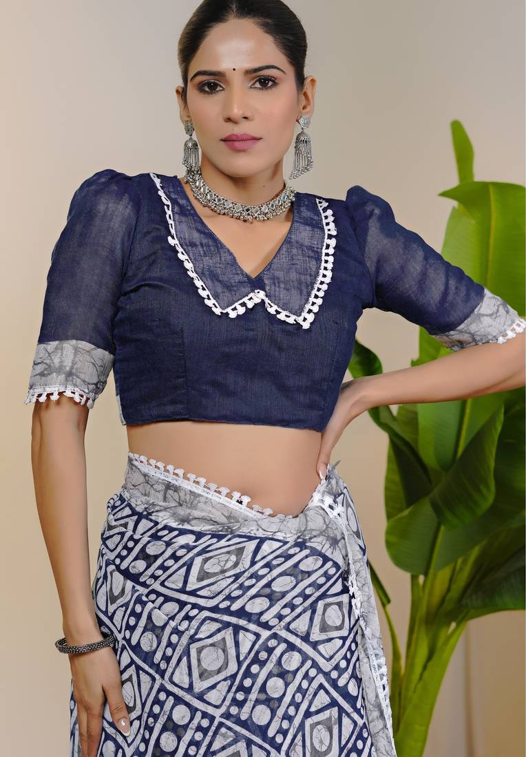 | Product Name | Cotton Blend Batik Block Print Ready To Wear Saree With Pocket Navy Blue | |