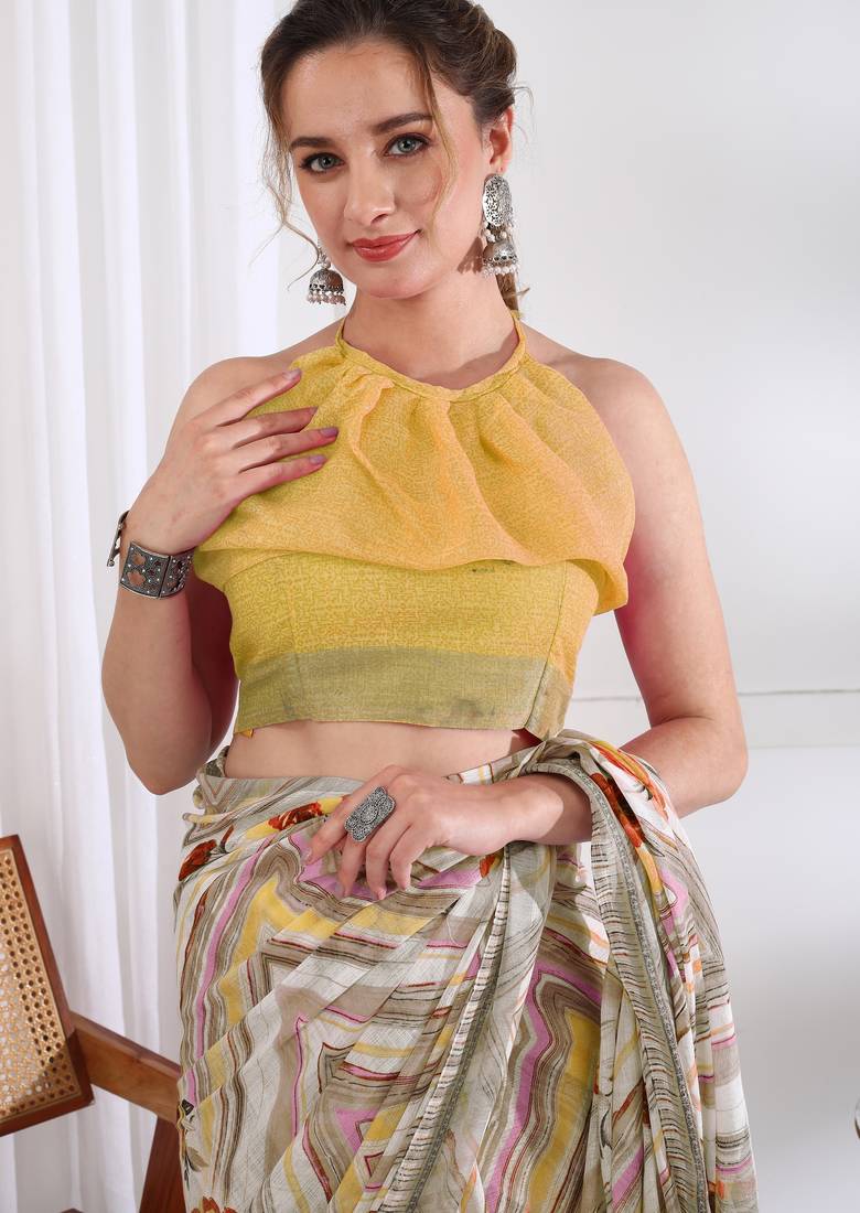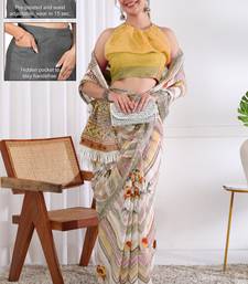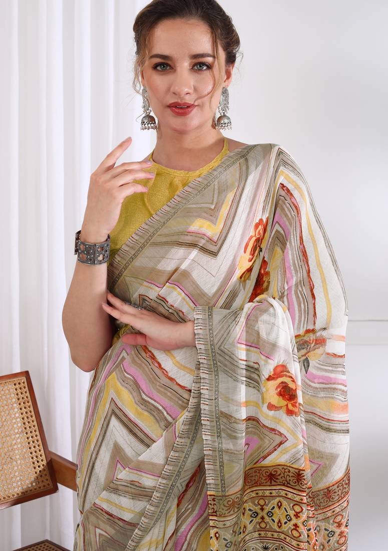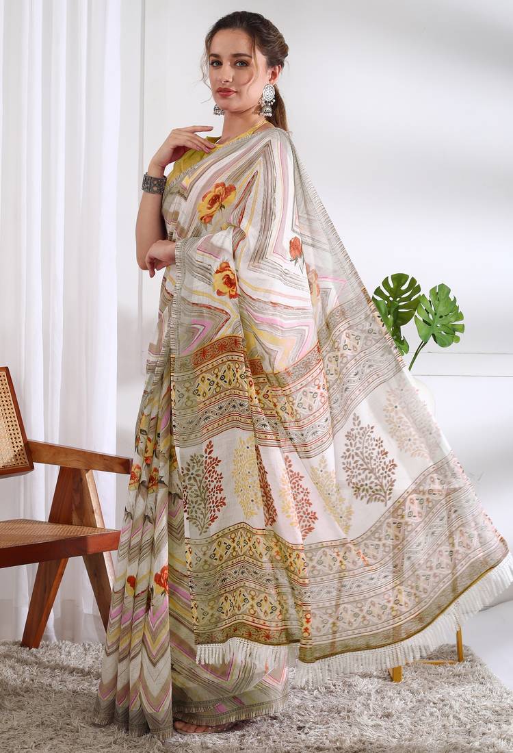 | Product Name | Cotton Blend Chevron Floral Print Ready To Wear Saree With Pocket White | |