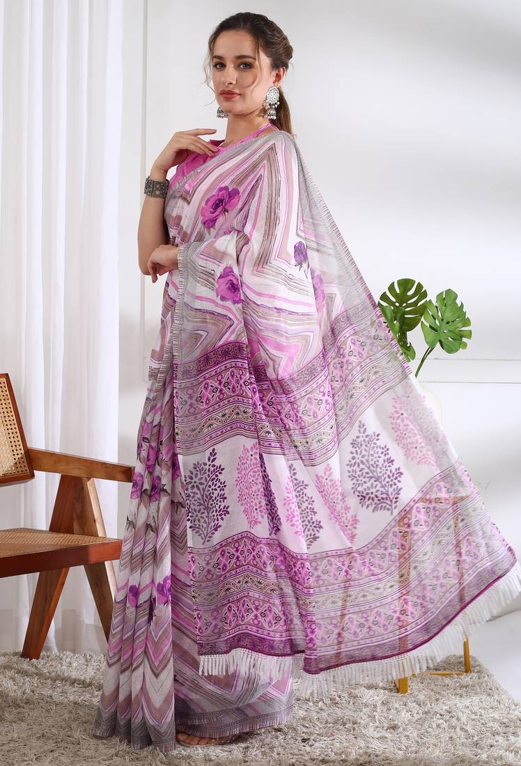 | Product Name | Cotton Blend Chevron Floral Print Ready To Wear Saree With Pocket White | |