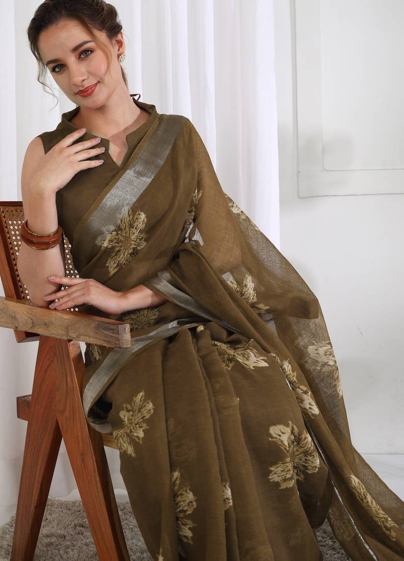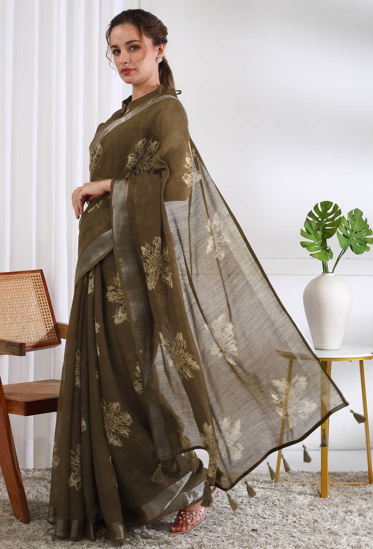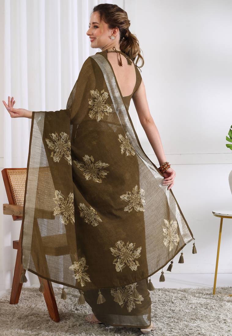 | Product Name | Cotton Blend Floral Block Print Ready To Wear Saree With Pocket Dark Mustard | |