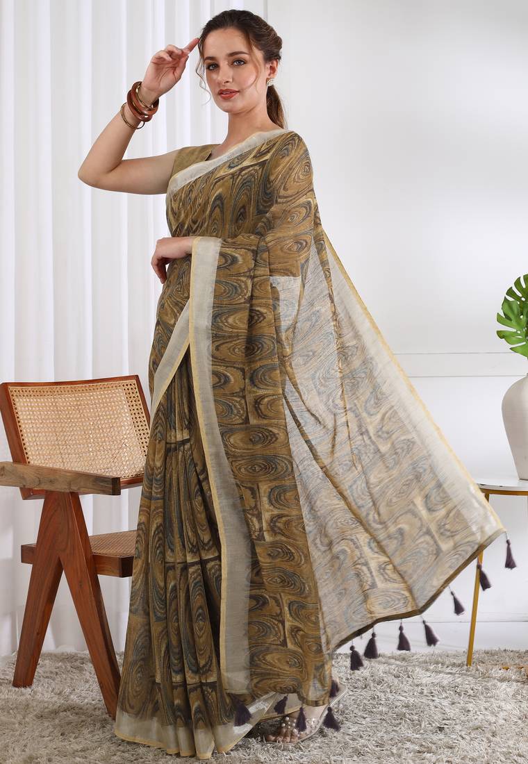 | Product Name | Cotton Blend Geometric Print Ready To Wear Saree With Pocket Dark Beige | |