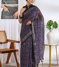 Cotton blend geometric print ready to wear saree with pocket dark purple
