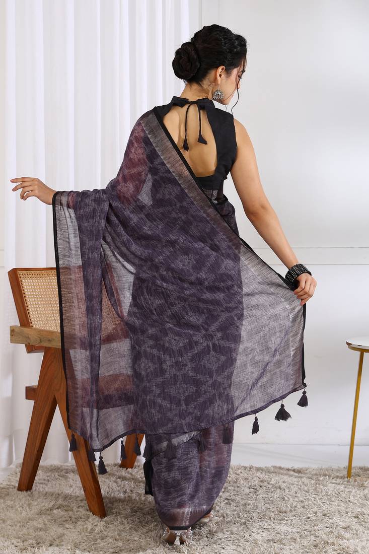 | Product Name | Cotton Blend Geometric Print Ready To Wear Saree With Pocket Dark Purple | |