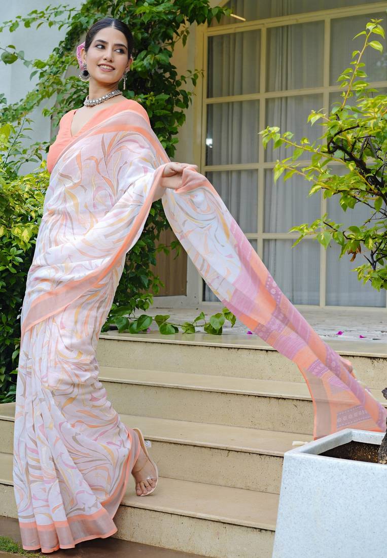 | Product Name | Cotton Blend Geometric Print Ready To Wear Saree With Pocket White | |