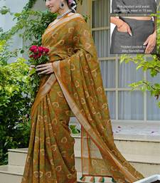 Cotton blend paisley kalamkari print ready to wear saree with pocket dark mustard