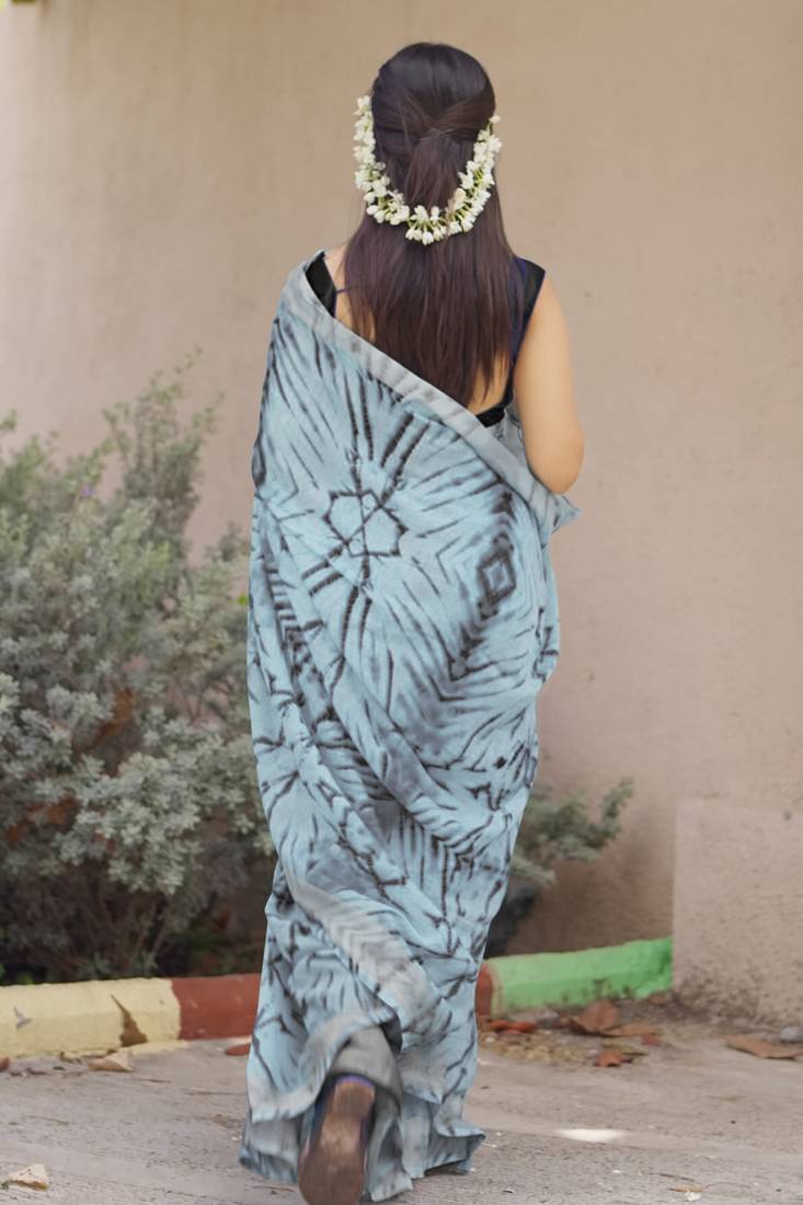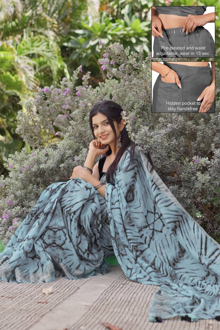 | Product Name | Cotton Blend Shibori Print Ready To Wear Saree With Pocket Light Blue | |