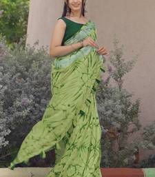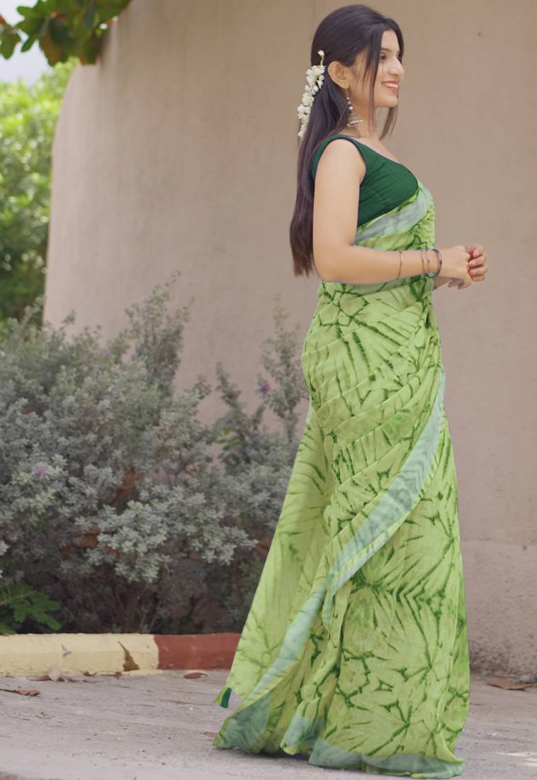Cotton blend shibori print ready to wear saree with pocket olive green