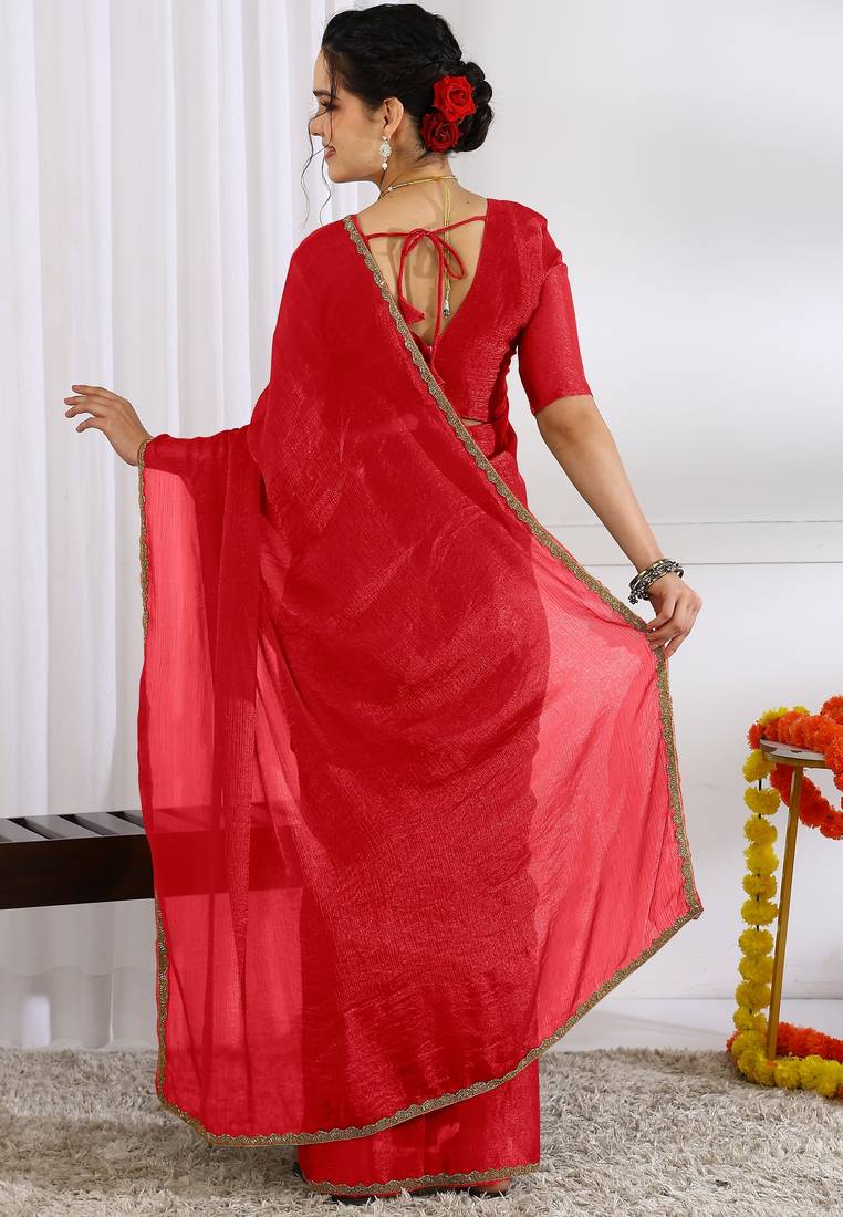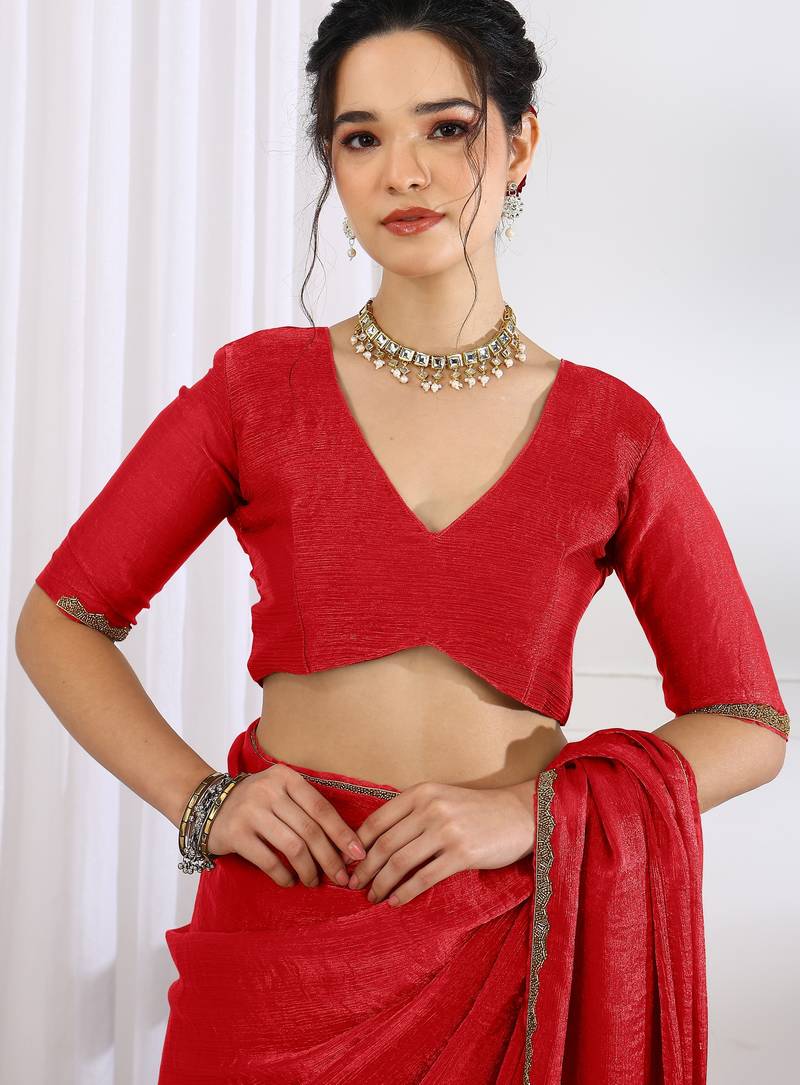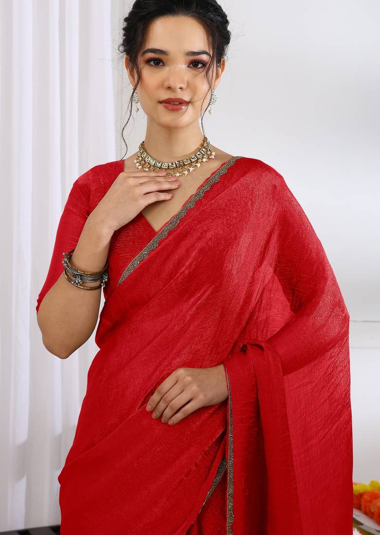 | Product Name | Silk Blend Zari Woven Print Ready To Wear Saree Red | |
