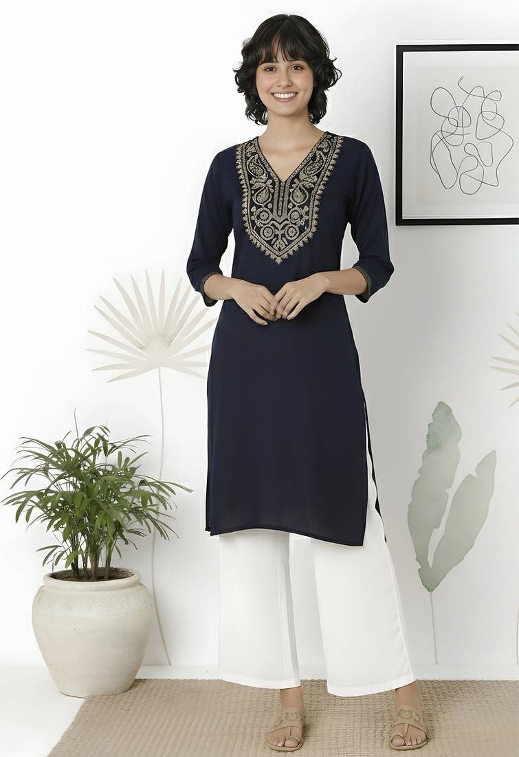 | Product Name | Navy Embroidered Rayon Kurta Palazzo | |