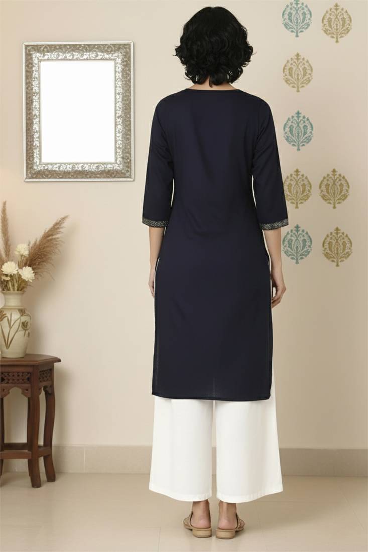 | Product Name | Navy Embroidered Rayon Kurta Palazzo | |