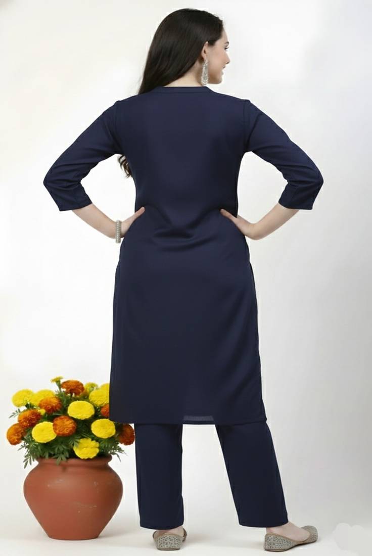 Navy plain rayon kurta pant stitched