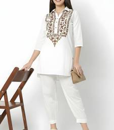 White embroidered rayon kurta set stitched