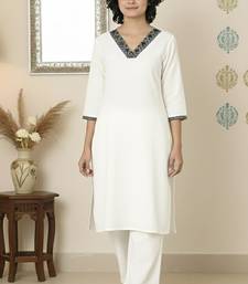 | Product Name | White Embroidered Rayon Kurta Palazzo | |