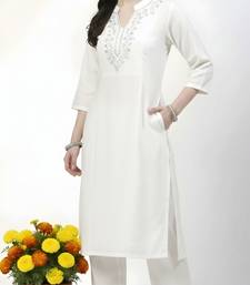 White embroidered rayon kurta pant stitched