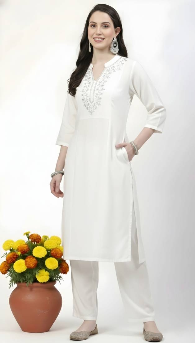 | Product Name | White Embroidered Rayon Kurta Pant | |