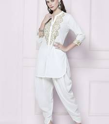 White plain rayon kurta with dhoti pant stitched