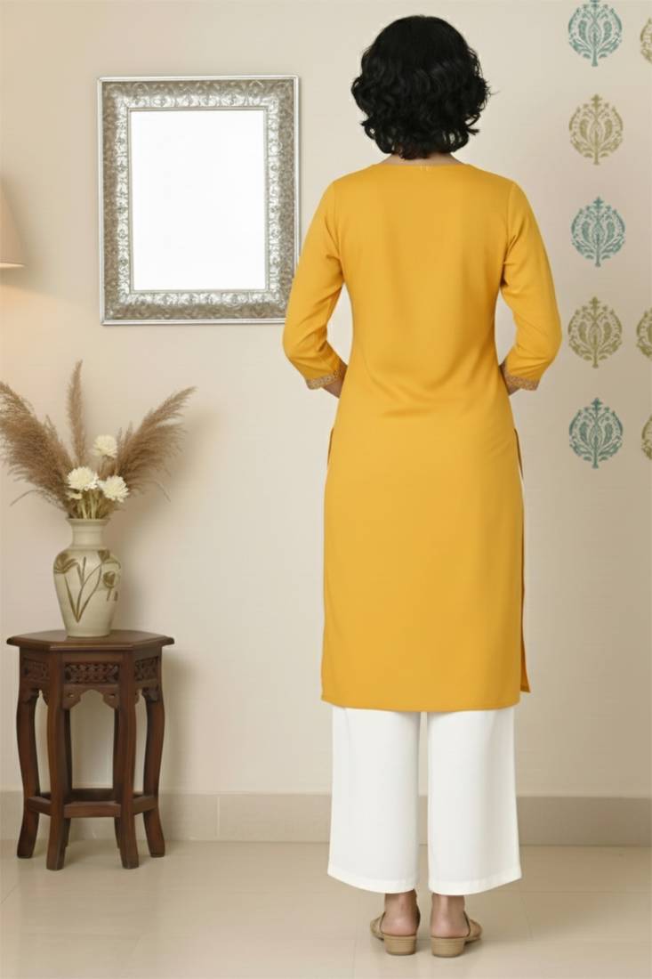 | Product Name | Yellow Embroidered Rayon Kurta Palazzo | |