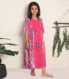 | Product Description | Featuring A Pink Ikat Print Paneled Dress With Button Opening. The Dress Has Hand Kantha Embroidery Along With Parrot Tassels In The Front. |