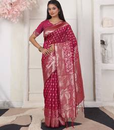 Blue color weving work lichi silk fancy saree with blouse