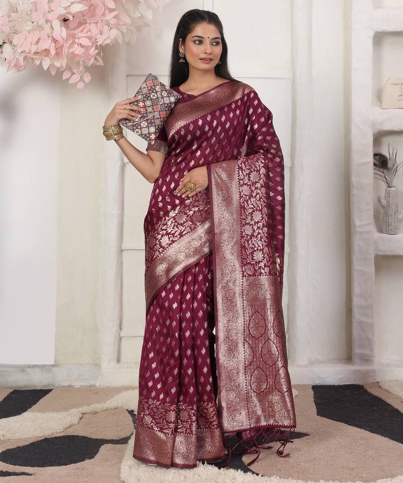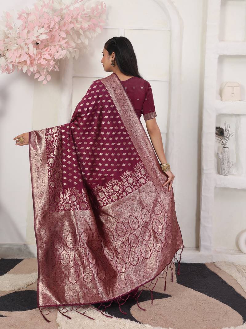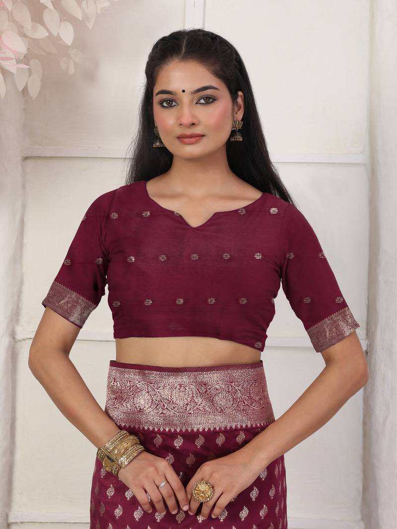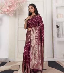 Purple color weving work lichi silk fancy saree with blouse