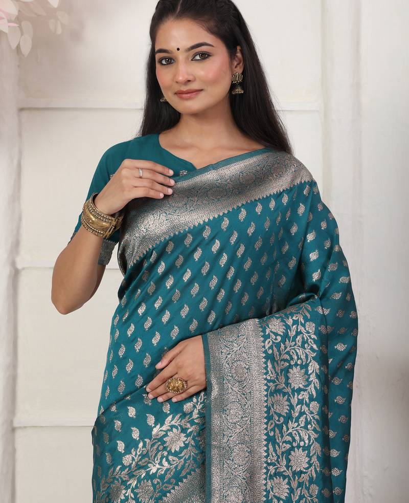 | Product Description | Rama Green Color Weving Work Lichi Silk Fancy Saree With Blouse |