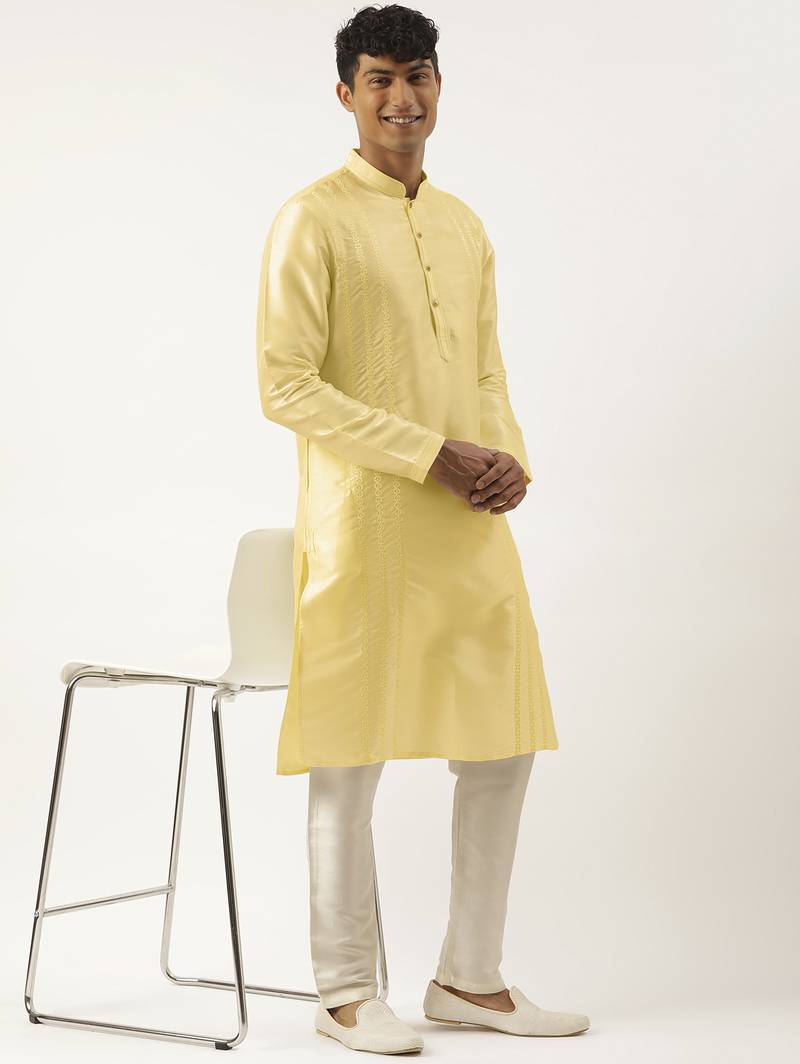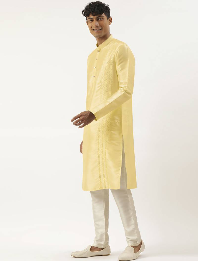 Yellow embroidered kurta pajama