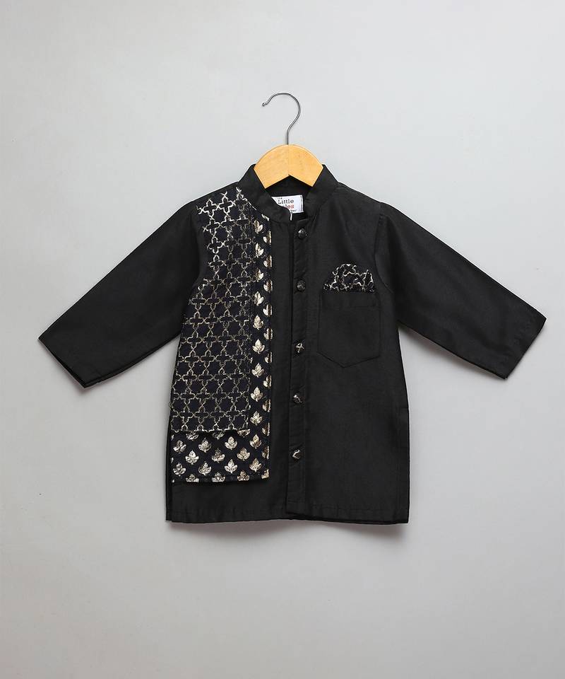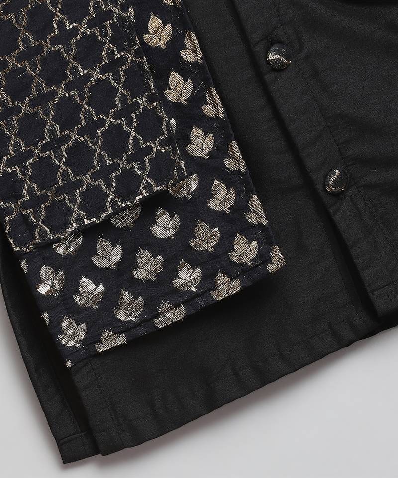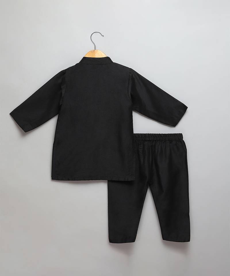 | Product Description | Black Cotton Silk Kurta With Front Opening. Attached Cotton Zari Panels On The Kurta . Pajama With Elastic