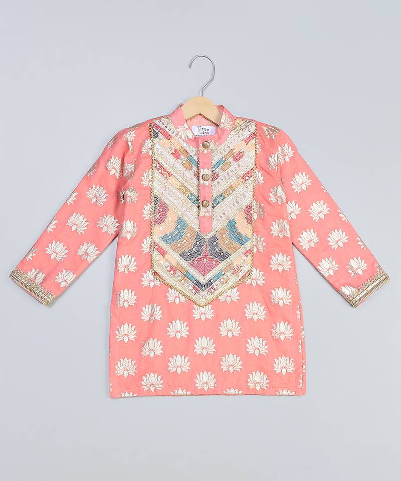 | Product Name | Peach Embroidered Cotton Silk Kurta Pyjama | |