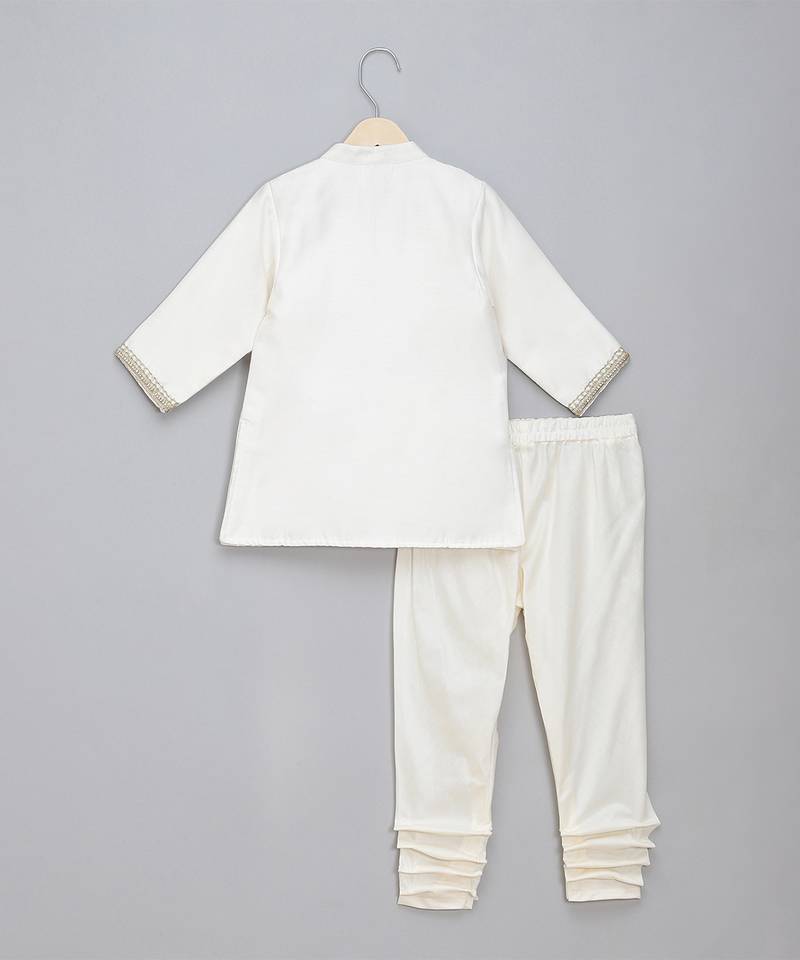 | Product Description | Off White Bandhagla With Pocket Resham Embroidery.Coton Zari Panel Attached On The Side.Cotton Lining Beneath. Bandhgala With Front Opening .Bandhgala With Fabric Buttons.Offwhite Churidar . Bottom With Elasticated Waist