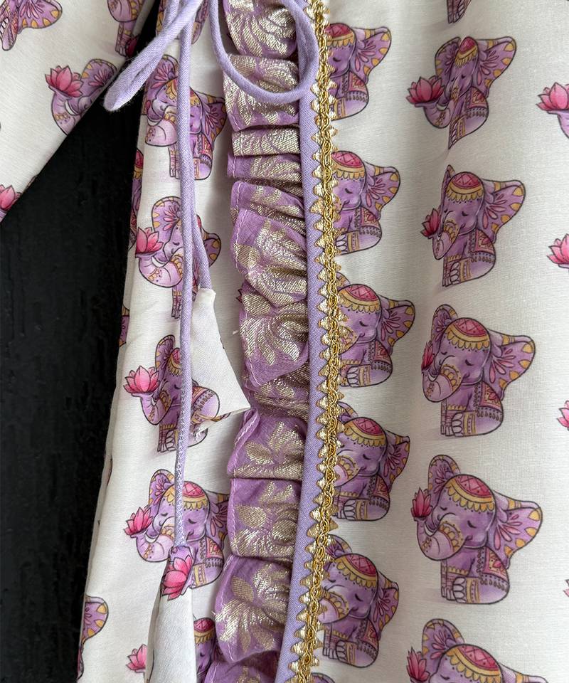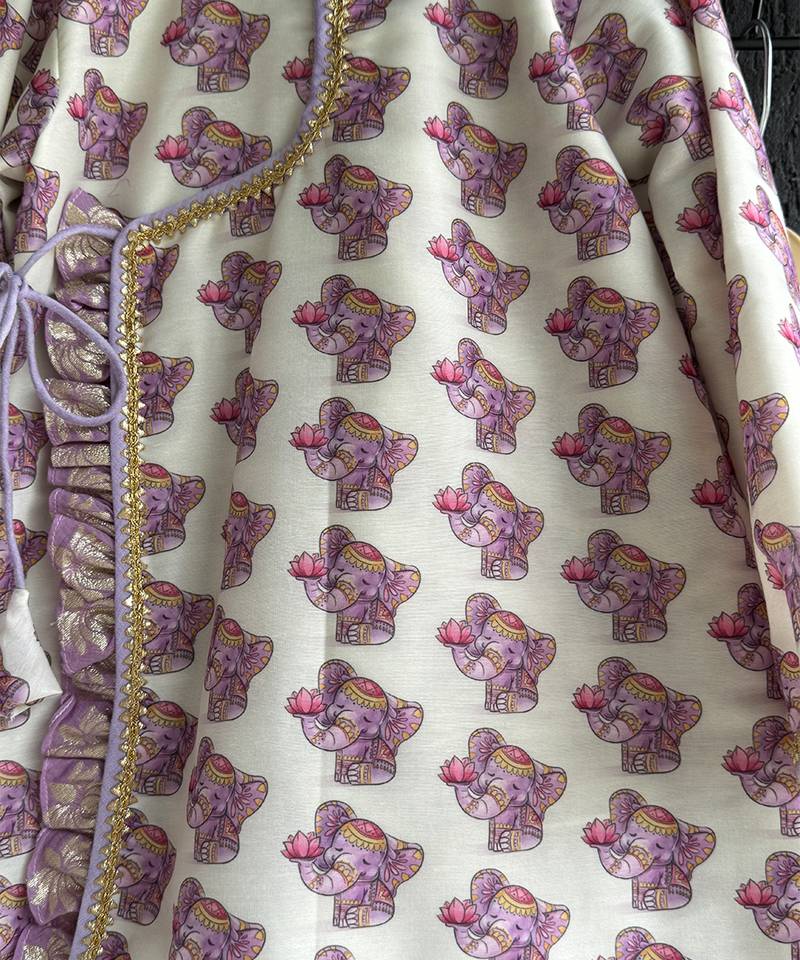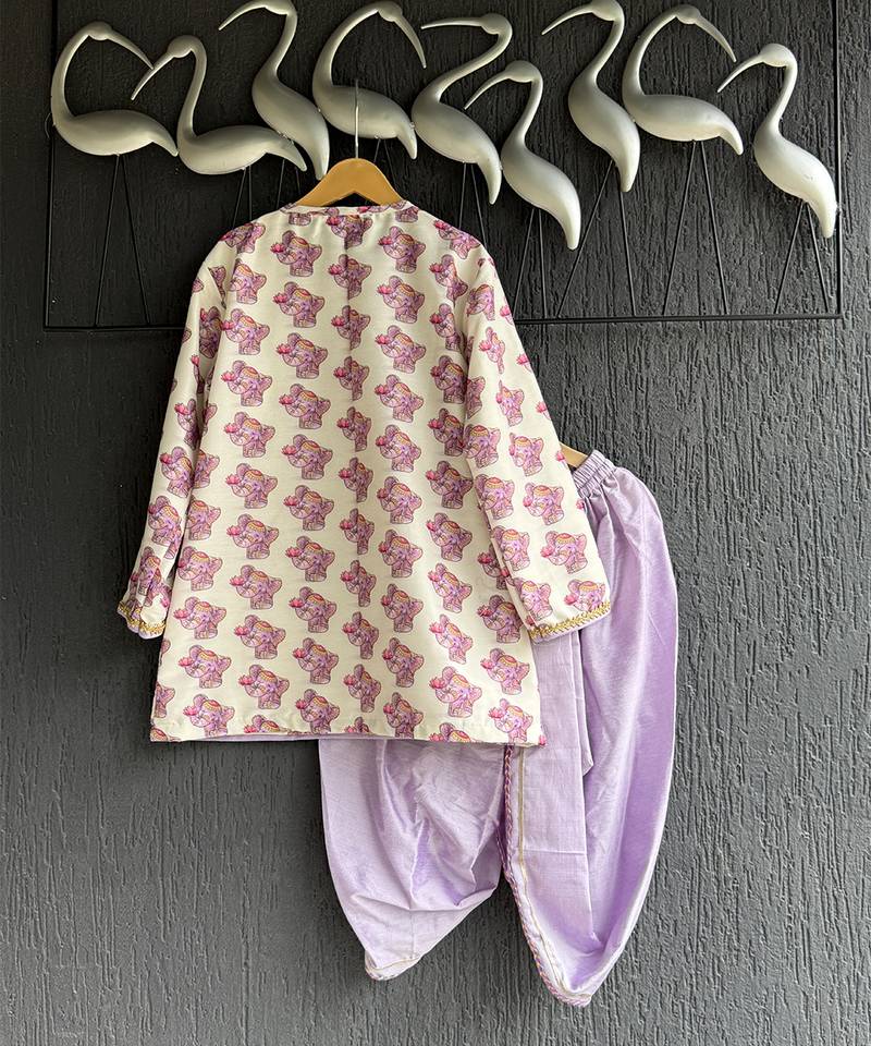 | Product Description | Ganpati Printed Kurta Set With Cotton Linings An Dchanderi Finishings . Bottom Dhoti With Elasticated Waist .