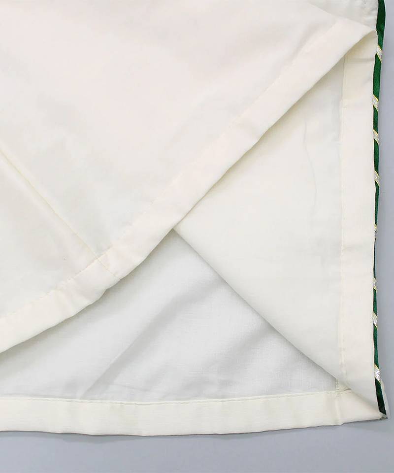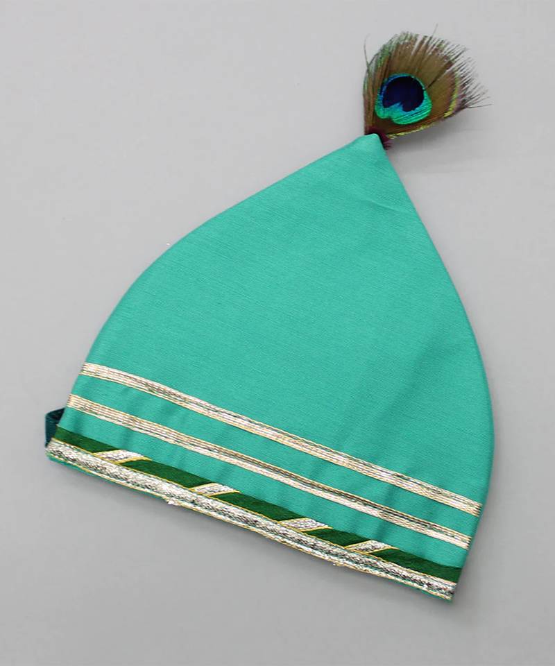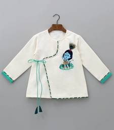 | Product Description | Off White Angrakha Kurta With Krishna Embroidery . Kurta With Lace Finishings.The Set Comes With A Fabric Khadi Printed Mukut . Green Dhoti With Pleating And Contrast Lace Finishings. Bottom With Elasticated Waist