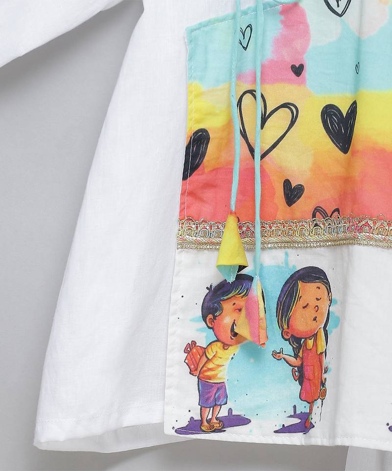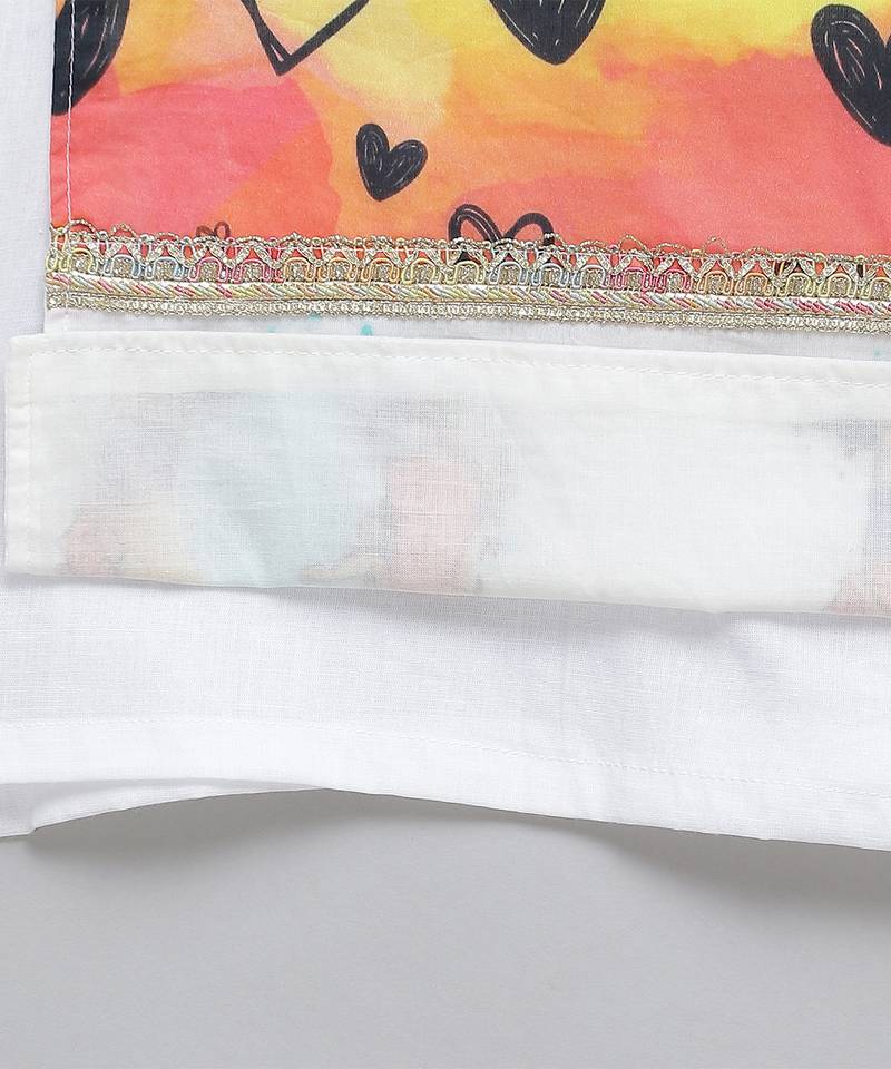 | Product Description | Yellow Cotton Silk Kurta With Printed Attached Panel On Top . Front Placket Opening . Pajama With Elastic.