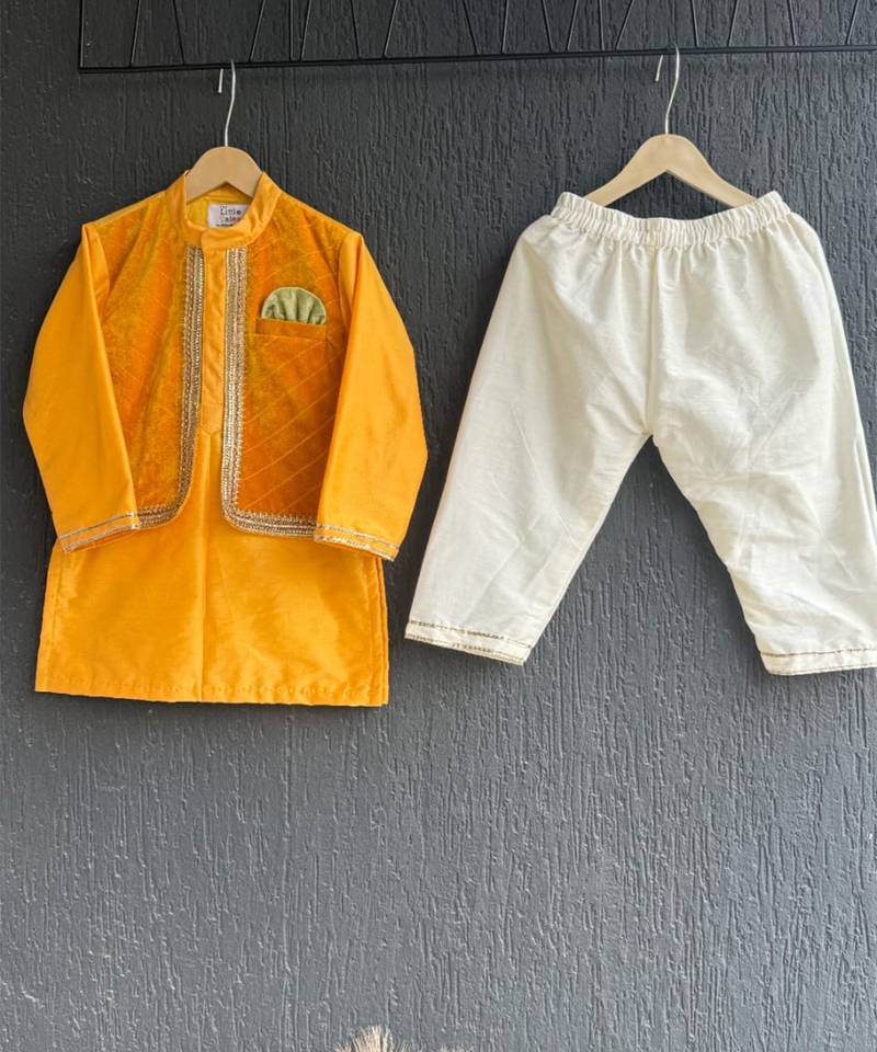 | Product Name | Yellow Embroidered Cotton Silk Kurta Pyjama | |