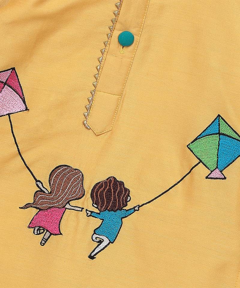 | Product Description | Off White Cotton Cambric Kurta Pyjama Set With Kite Embroidered Palla Over The Kurta . Pyjama With Elasticated Waist.