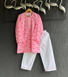| Product Description | Pink Bird Print Vibrant Cotton Kurta With Front Placket Accentuated With White Buttons On The Same . Kurta Comes With Full Sleeves. White Cotton Bottom With Elasticated Waist And Lace Hems Gives It A Complete Look For Summers