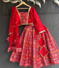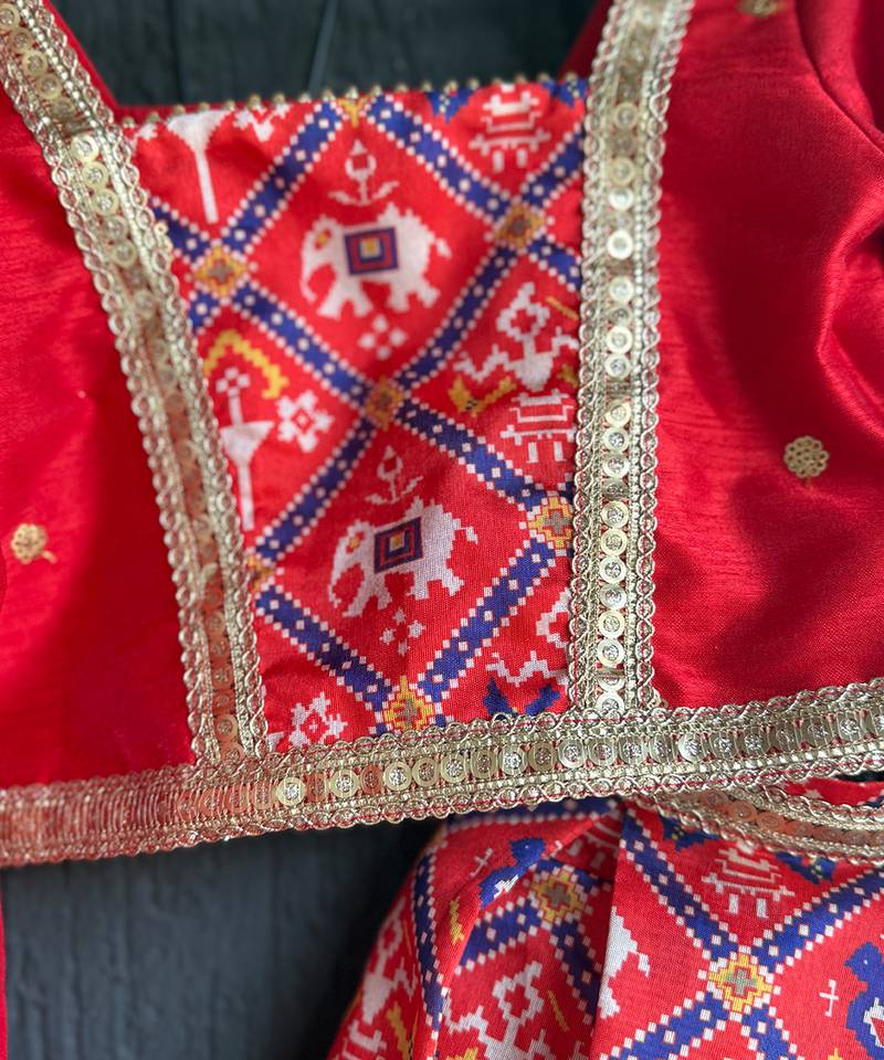 Red printed cotton lehenga set