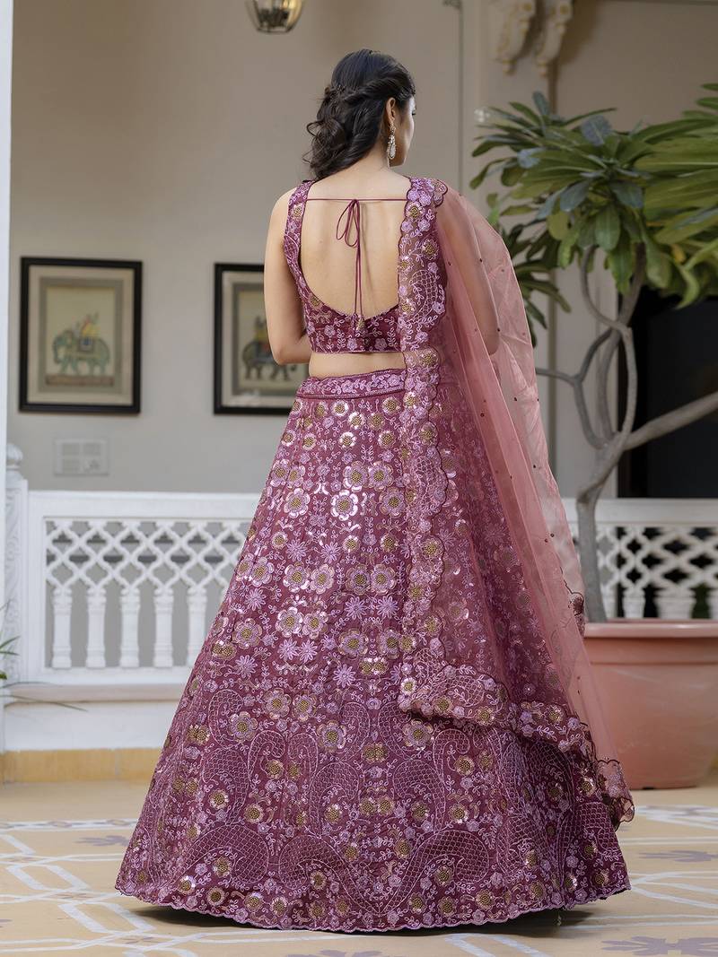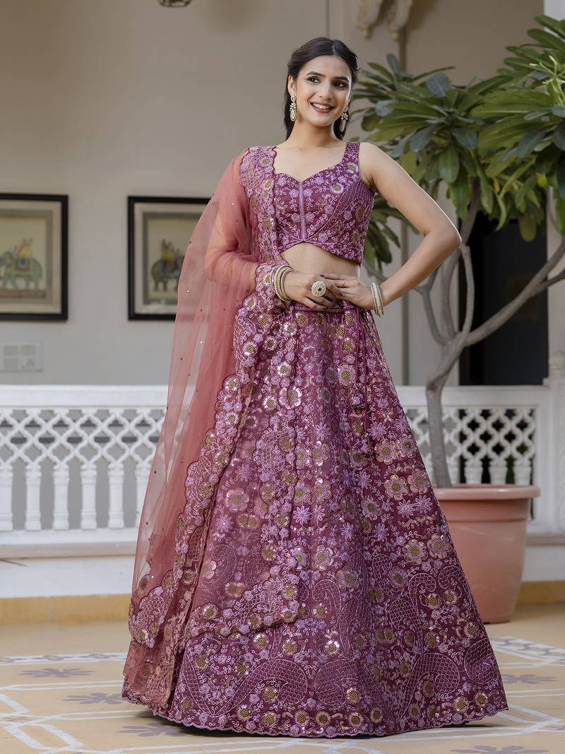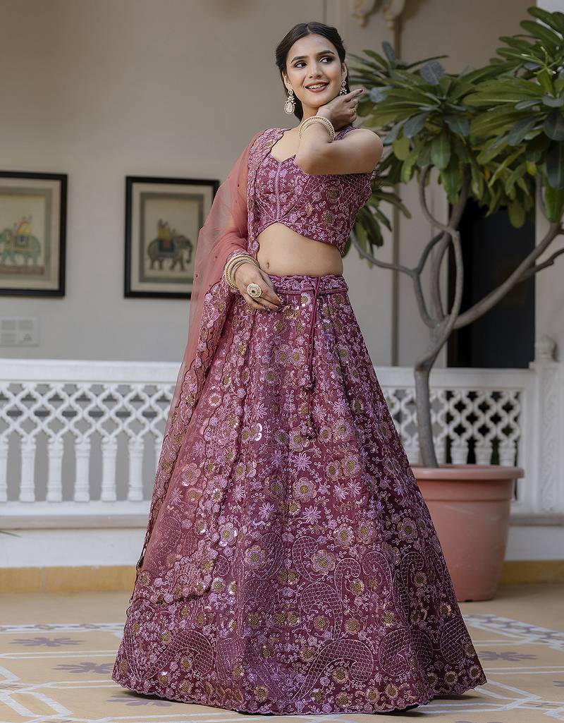 Art silk sequin embroidery work lehenga choli dupatta set semistitch