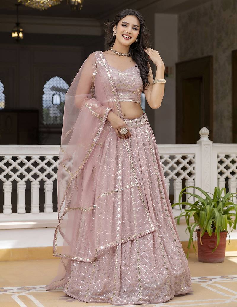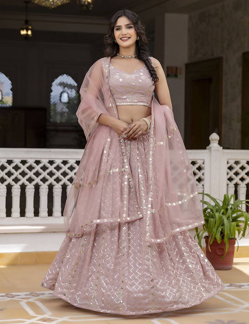 | Product Name | Pink Georgette Sequin Embroidery Work Lehenga Choli With Dupatta For Women | |