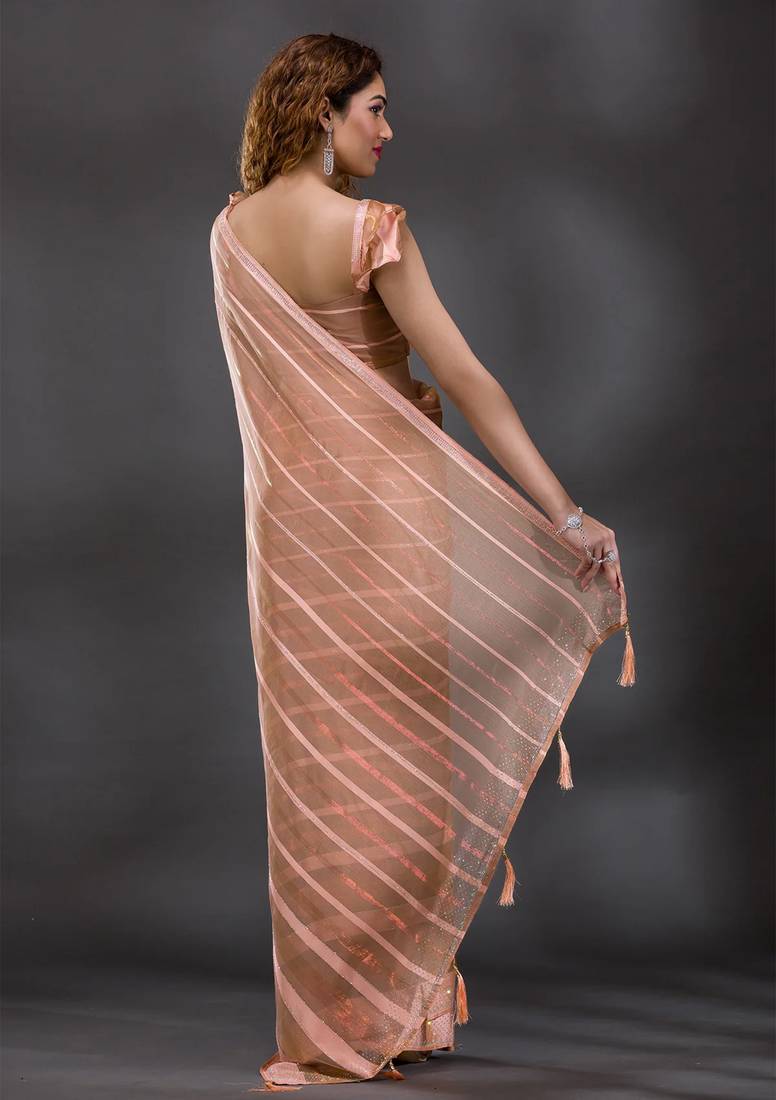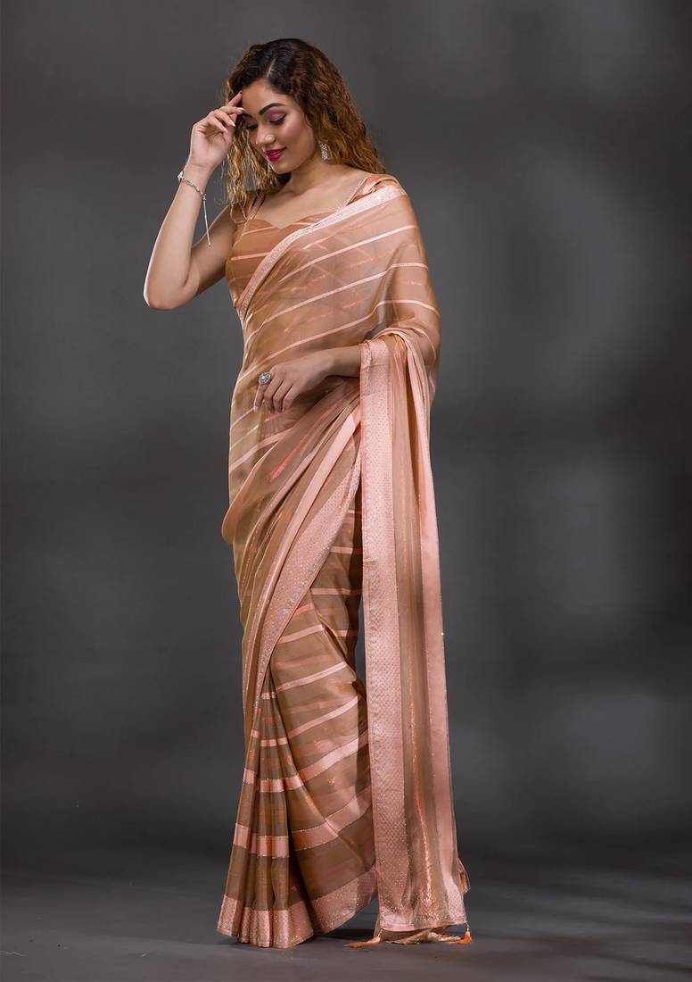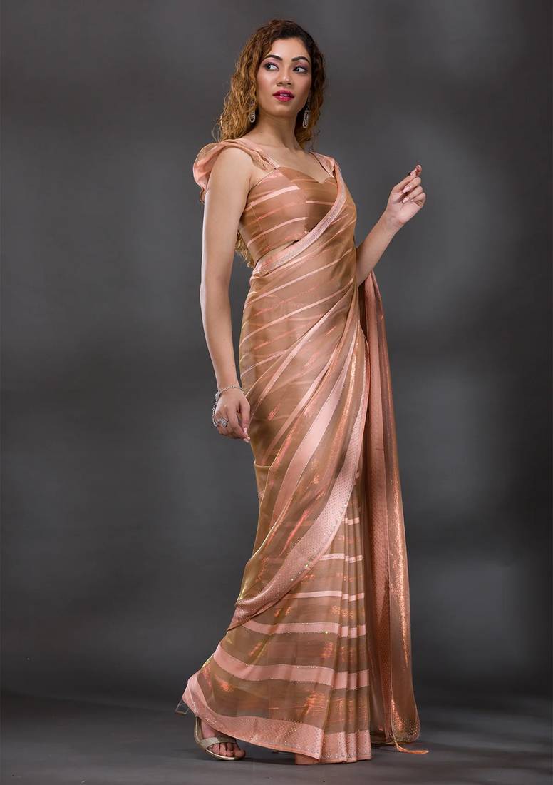 | • | Saree | : | Color- Peach / Fabric- Satin |