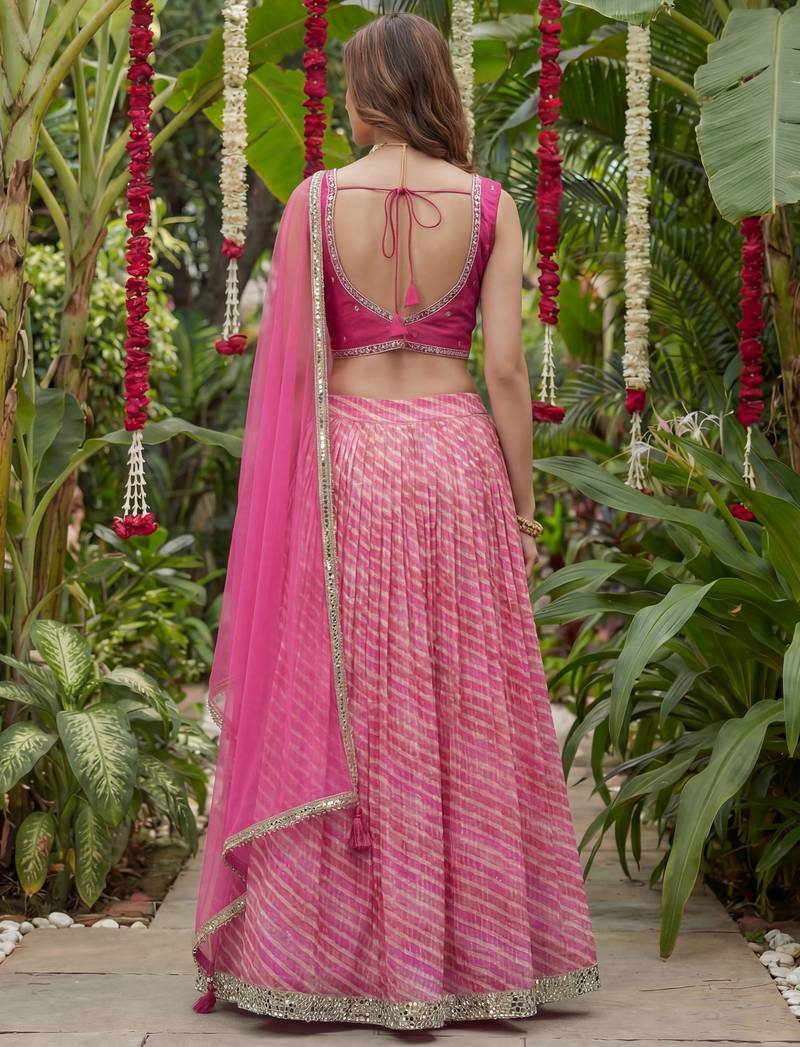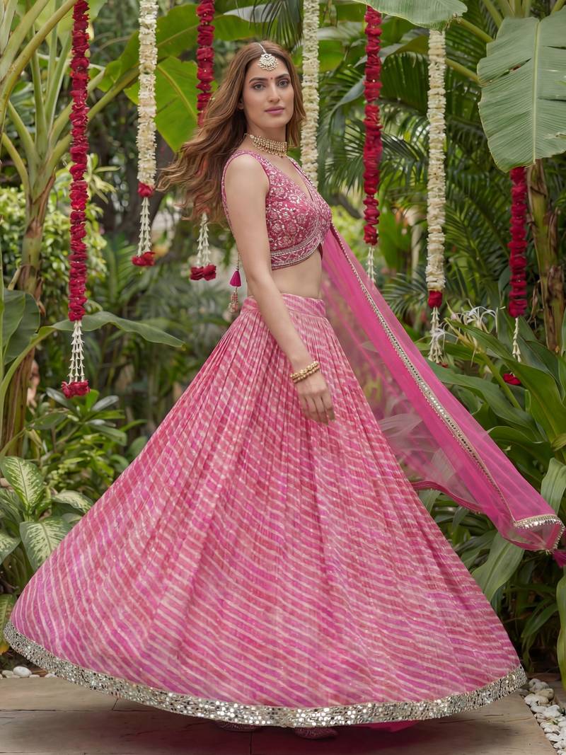| Product Name | Pink Laheriya Printed Organza Festive Lehenga Set Choli With Dupatta | |